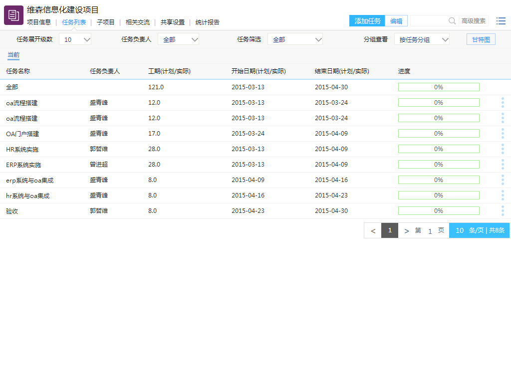 → 项目的进度管理实现了项目任务的多级定义和进度控制